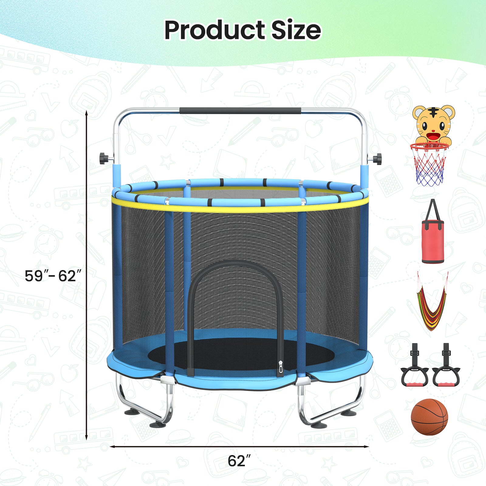 55" Kids Indoor Outdoor Trampoline with Enclosure Net